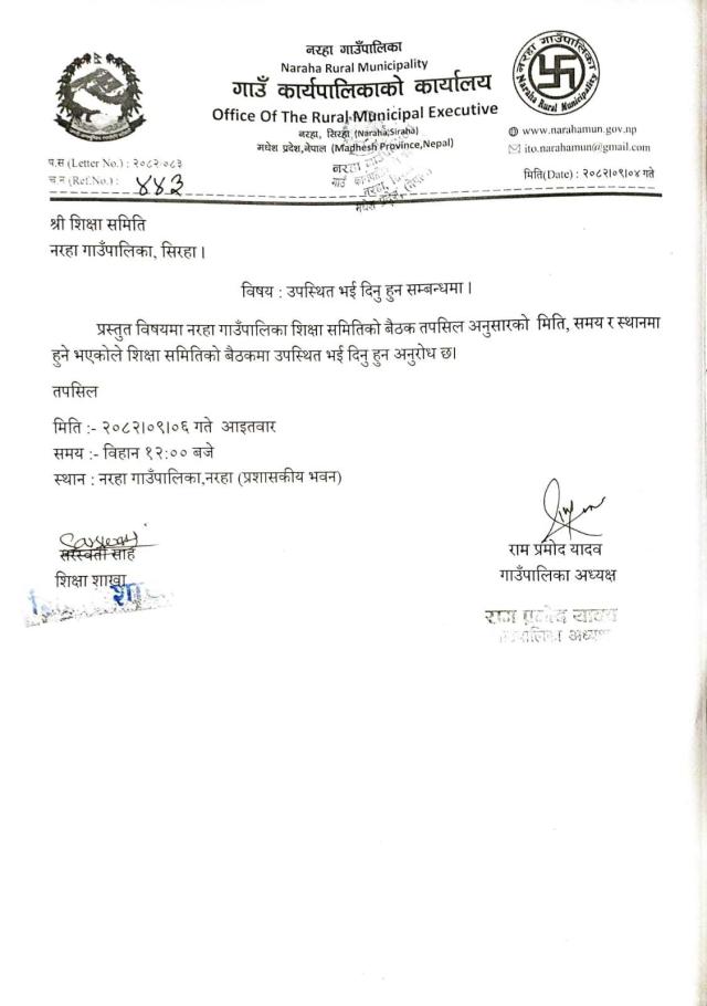 » शिक्षा समितिको बैठक सम्बन्धमा ।