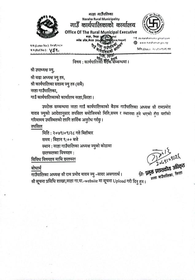 » कार्यपालिका बैठक सम्बन्धमा ।
