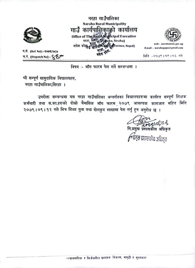 माग फारम पेश गर्ने सम्बन्धमा ।