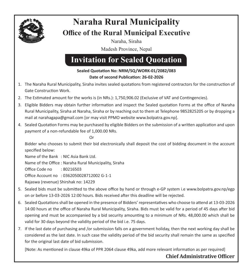 सार्वजनिक खरिद/बोलपत्र सूचना